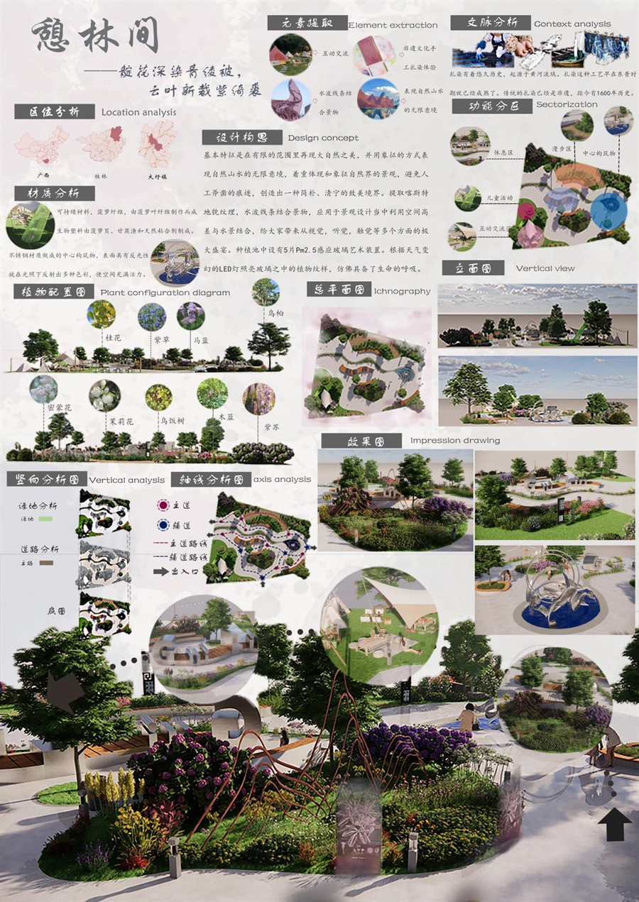 据悉,本次竞赛共有8所高校、139组、500余名学生参赛,竞赛设置了专科组、本科组、研究生组,以“ 食 · 色花园”为主题,旨在进一步鼓励和激发广西园林学子的设计创作热情和创新意识,弘扬工匠精神,培养园林设计实践创新型人才。