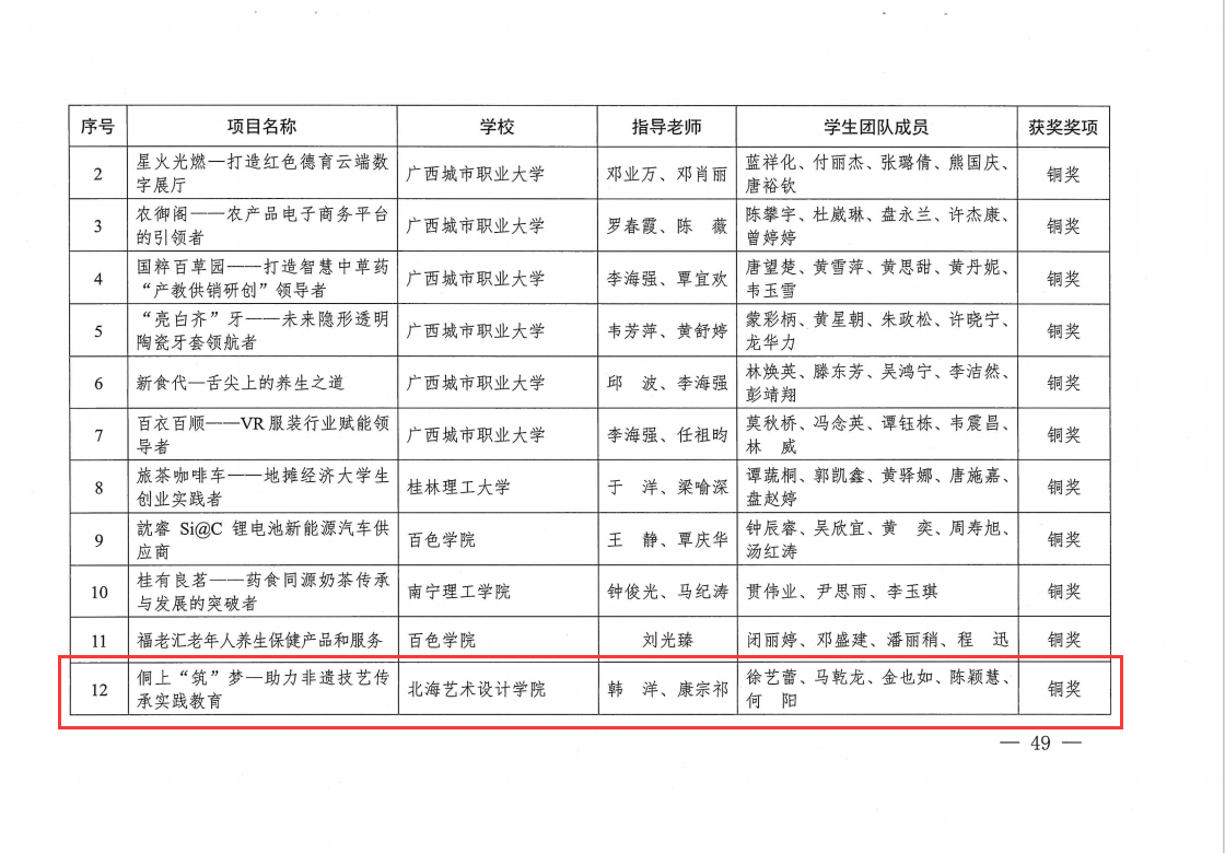 喜报│美术学院师生在第七届中华职业教育创新创业大赛广西区赛喜获佳绩