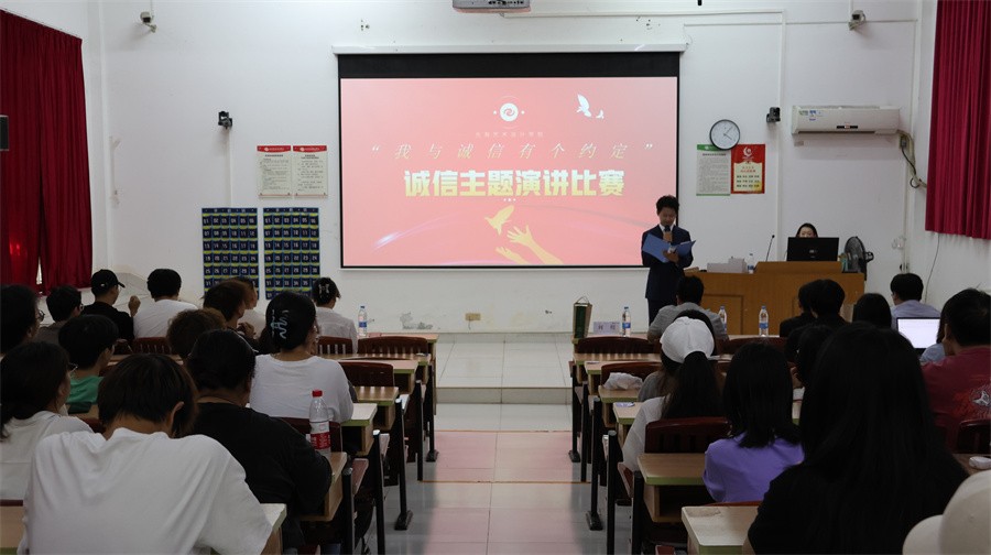 为教育引导学生加强诚信意识,树立诚信理念,培养诚信品质,营造良好的校园诚信氛围,近日,我校学生工作处学生资助管理中心举办了“我与诚信有个约定”诚信教育主题演讲比赛。副校长何煜出席比赛,学工处副处长刘玲花等8位领导、老师同120余名学生代表观看比赛。