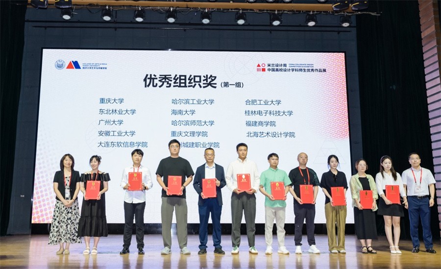 7月27日,第八届米兰设计周——中国高校设计学科师生优秀作品展颁奖典礼在上海同济大学举行。我校设计艺术学院师生在全国总决赛中荣获佳绩,其中全国一等奖5项、二等奖12项、三等奖15项;“优秀指导教师奖”5项并获得“优秀组织奖”,设计艺术学院教师代表郭梦楠、石宏伟参加颁奖典礼及学术论坛。