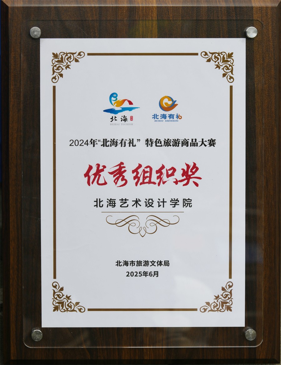 近日,由北海市旅游文体局、北海市总工会、北海旅游集团有限公司联合主办的2025年北海市“文化和自然遗产日”暨第二届“北海有礼”特色旅游商品大赛颁奖和宣传展示活动圆满落幕。我校设计艺术学院师生凭借出色的创意理念与扎实的设计功底,在大赛激烈的竞争中脱颖而出,摘得银奖1项、铜奖2项、优秀奖8项、优秀组织奖1项,充分展现了学校在文化创意设计领域的强劲实力与育人成果。