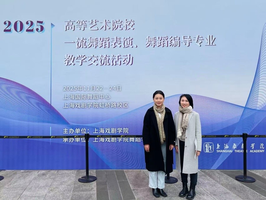 近日,我校舞蹈学院青年教师邓欢、陈俏仪应邀参加上海戏剧学院舞蹈学院主办的“2025高等艺术院校一流舞蹈表演、舞蹈编导专业教学交流活动”。本次活动以系统课程展示、尖子人才展演、专题研讨及精品剧目展演为主要内容,为全国高等艺术院校搭建高水平专业交流平台。