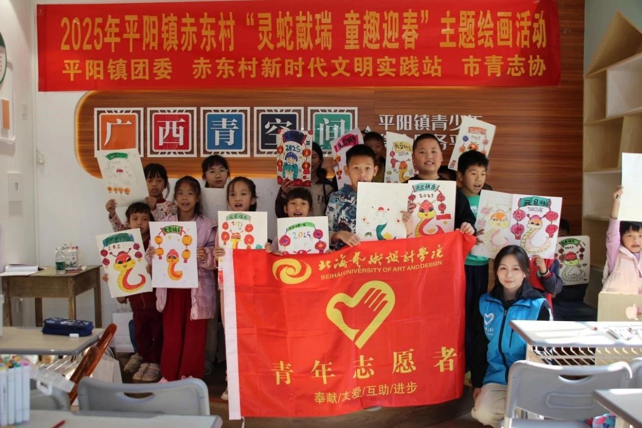 在平阳镇赤东村开展“灵蛇献瑞,童趣迎春”元旦主题绘画活动,志愿者们巧妙地将传统元素融入绘画教学,孩子们用画笔描绘出对新年的期待。他们的小手一笔一画地创造出寓意吉祥与好运的蛇形图案,每个人脸上都洋溢着幸福笑容。通过此次活动,孩子们不仅学会了用画笔来表达自己的想法和感受,还收获了志愿者们的关心与陪伴,同时加深了对中华优秀传统文化的认识