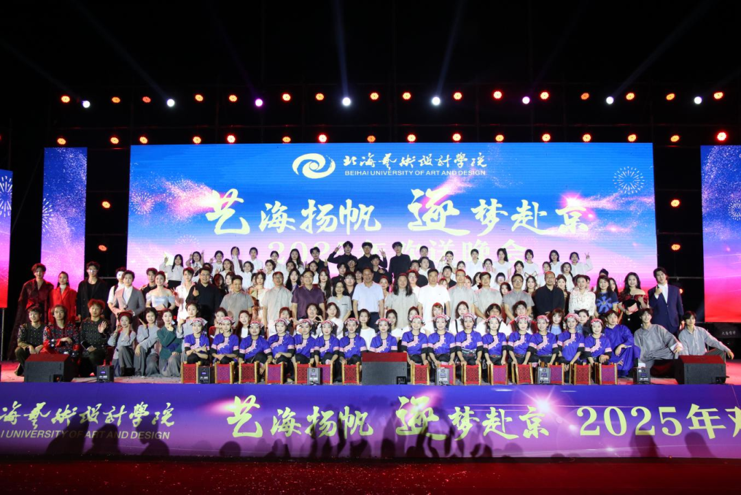5月29日,我校在西校区操场开展北海艺术设计学院“艺海扬帆,逐梦赴京”2025年欢送晚会。这场精心筹备的视听盛宴,既是对2022级学子三年来拼搏奋进、成长蜕变的深情回望,更满载着对他们即将奔赴北京、开启新征程的诚挚祝福与殷切期许。